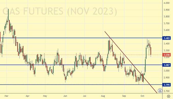 Growth scenario: switched to November futures, expiration date October 27. We continue to hold long. If Qatar interrupts gas supplies to Europe, prices will go through the roof.