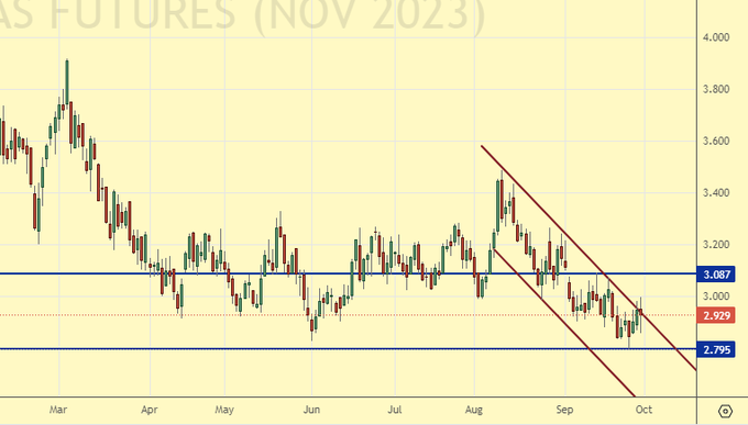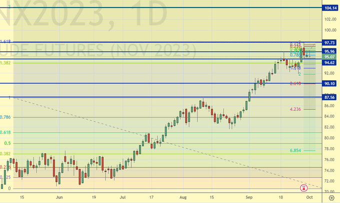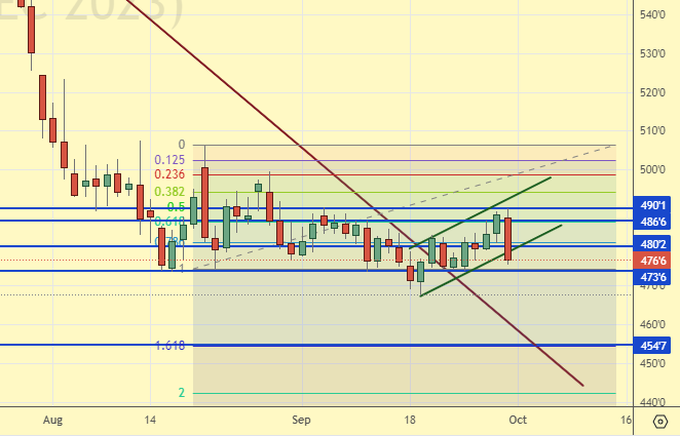 Growth scenario: we are considering November futures, expiration date October 20. Let’s refrain from shopping for now. Prices are high. Need a rollback.