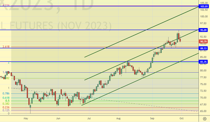 Growth scenario: we are considering November futures, expiration date is November 30. It is possible that the correction will continue; from 90.00 a long entry is possible.