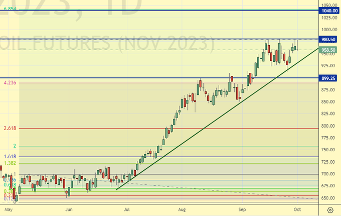 Growth scenario: switched to November futures, expiration date October 27. We have been holding a long position for a very long time. We are waiting for winter.