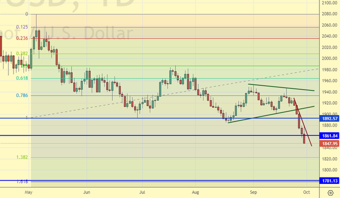 Fall scenario: keep short. We have broken through the minimum at 1281, the mark of 1195 awaits us. We can increase the shorts a little, by 20%.