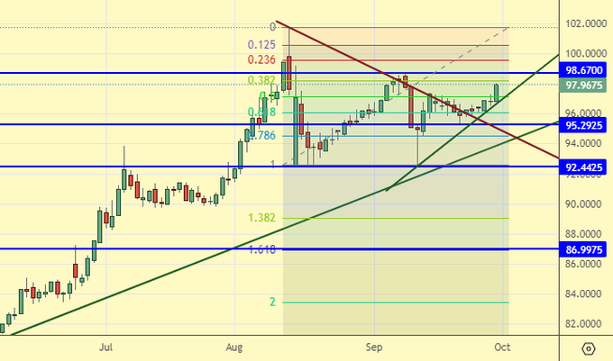 Growth scenario: everything is going very well for the bulls. In case of growth above 99.30, we will be forced to enter long.
