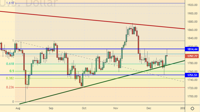 In the event of a further rise in inflation, especially with regard to prices for imported goods, the Central Bank of the Russian Federation will be forced to raise the rate further, which will negatively affect a number of companies operating within the country. At some point, especially given the Kremlin’s desire to see inflation in the country at 4 percent or below, the national currency will have to be strengthened, for example, through weakening the budget rule on the mandatory sale of foreign exchange earnings. The main thing for us is that the ruble does not go according to the Turkish scenario. We, of course, can both allow this and survive, but we really don’t want to. We draw your attention to the fact that next Friday the 24th in the USA and a number of other countries is a day off in honor of Catholic Christmas.