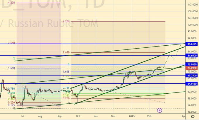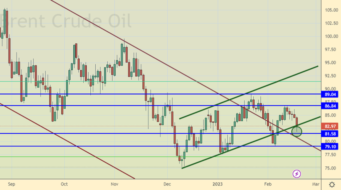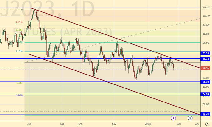 Growth scenario: we are considering the April futures, the expiration date is March 21. While we are below the level of 82.00, we should not buy. Out of the market.