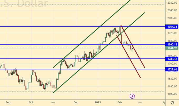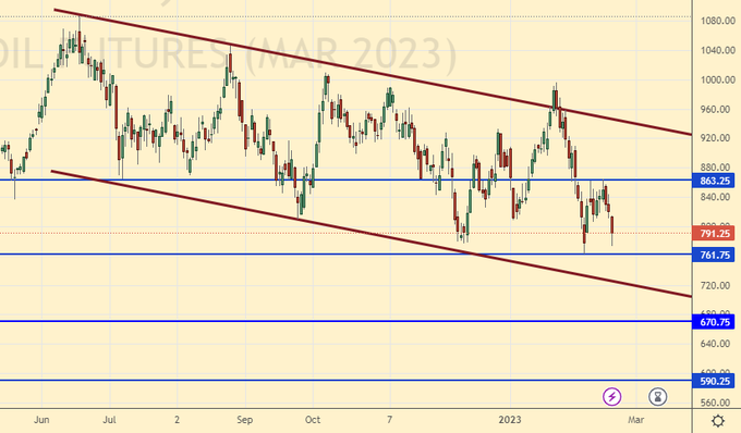Novak said Russia would cut oil production by 500,000 bpd from March. However, while the available data for February suggests that Russia is not reducing production at the moment, and sanctions, if they affect the sector, will not immediately. The production level is close to last year and amounts to 1.5 million tons per day. The EU cannot live without Russian oil, as evidenced by the loopholes left to circumvent sanctions. That is why we do not see a rapid move to the level of $110 per barrel for Brent oil. There is no shortage in the market.