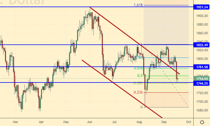 Falling scenario: the US Federal Reserve is unlikely to surprise the market with strong rhetoric on Wednesday. The bet on falling gold is extremely risky. We don’t open the new shorts, but keep the old ones.