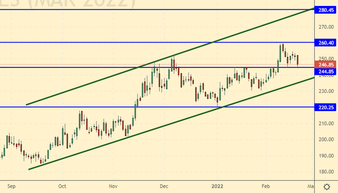 Growth scenario: April futures, the expiration date is March 29. We hold longs. The gas situation in Europe is tense.