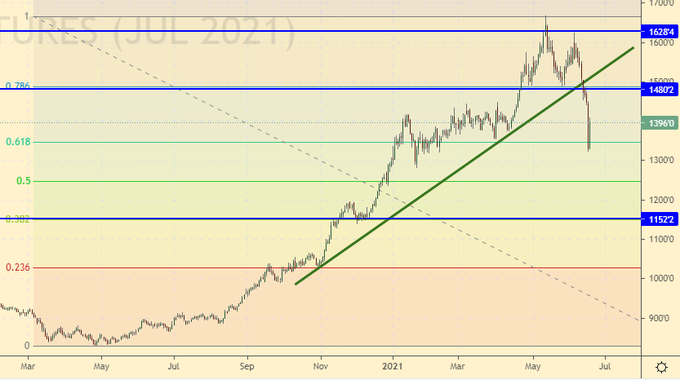 Growth scenario: July futures, expiration date July 14. We did not buy, counting on a correction. Level 1300.0 is not enough for us. But buying from 1152.0 will make sense.
