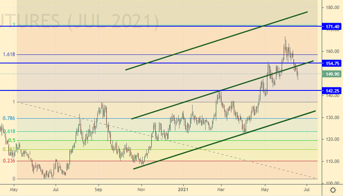 Growth scenario: July futures, expiration date July 20. We waited for a rollback. I would like to see a fall to 135.00 in order to enter the long there.