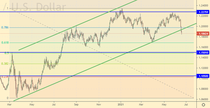 On June 16, the FOMC reacted sluggishly to the rise in inflation. The concern was highlighted in the press release, but nothing more. The current strengthening of the dollar is a large advance for the American currency, since in fact there is no question of any rate hike in 2021. Looking ahead for more than six months in the current environment seems to be a bit rash. And to talk publicly about what will happen there in 2023, which is what the Fed is doing, is simply pointless.