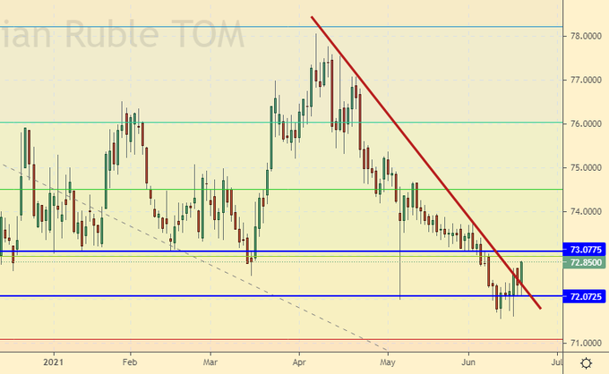 The meeting between Putin and Biden took place. Limousines, planes and separate press conference. Note that, in fact, the American grandfather was not as helpless as our media presented him. The main thing is that after the summit, no one had bruises under their eyes, due to overwork, of course. Everything went more or less smoothly. That is why the ruble is in no hurry to actively fall ahead of the dollar following the euro, although hints of weakening have appeared.
