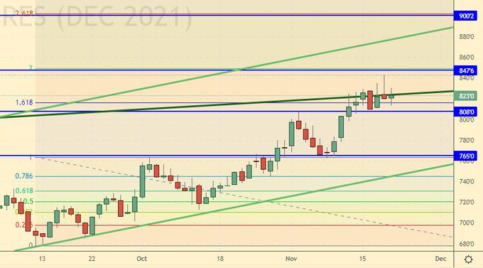 Growth scenario: November futures, expiration date November 30. We don’t buy yet. Around 75.00 it will be possible to enter the long, provided that no general lockdown is introduced in Europe.