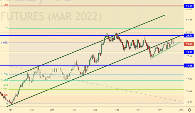 Growth scenario: March futures, the expiration date is February 28. We continue to believe that you can buy only after a rise above 20.70. The second option is to enter long after falling to 18.15.