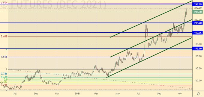 Growth scenario: December futures, the expiration date is December 20. We almost reached our goal at 246.0. The market should touch our target next week. We are waiting.