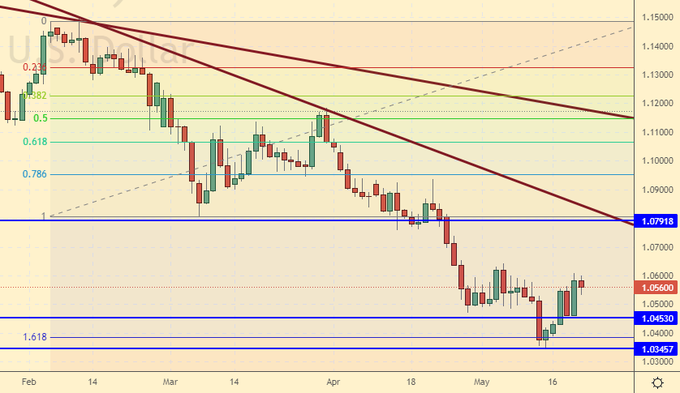 Growth scenario: the Russian stock market tried to grow on the expectations of dividends from Gazprom. But the company is unlikely to give investors as much as 50 rubles per share, as ordinary people expect. And 10 rubles is enough. The Board of Directors will be held on May 26th. We don’t believe in growth. Out of the market.