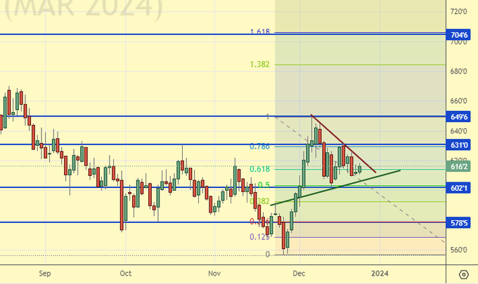 Growth scenario: we are considering the February futures, expiration date is January 22. Shopping levels are inconvenient. We are not going long yet. From 61.50 a must buy.