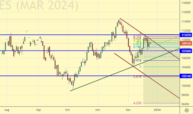 Fall scenario: we are short from 114,000. Yes, the idea of a New Year’s rally this year did not settle in the heads of traders. If we go below 107,000, we can increase our shorts.
