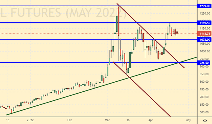Growth scenario: consider the May futures, the expiration date is May 12. We hold longs. There will be problems with fuel this year.