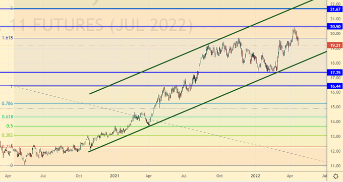 Falling scenario: shorts from 21.60 are possible. Sales from current levels are not interesting. Recommendation: