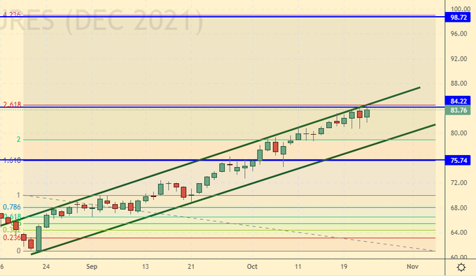 Growth scenario: considering the October futures, the expiration date is October 29. We keep long. Our target at 88.00 remains relevant.