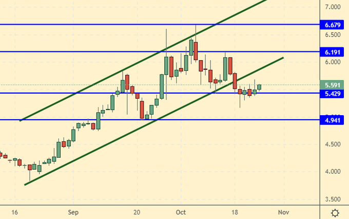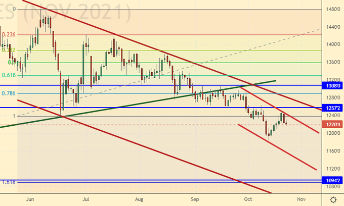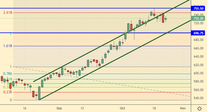 Growth scenario: considering November futures, expiration date November 11. We were unable to climb 750.0. At the moment, out of the market.