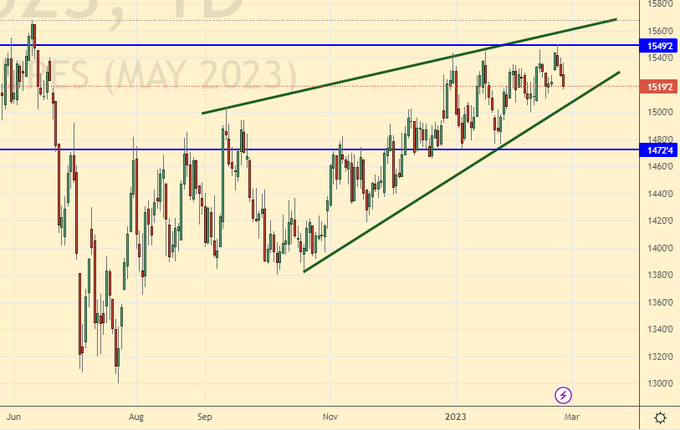 Growth scenario: we are considering the April futures, the expiration date is March 21. Until we buy. Only if the market rises above 81.50 will we go long.