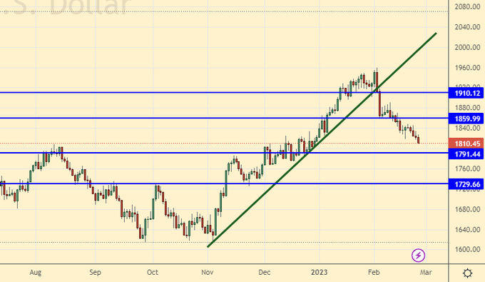 There is a lot of talk about the revival of China, but oil is in no hurry to grow. Moreover, there is a threat of falling below the 80 level, which could lead to a rapid drop in prices of 10 percent amid bulls’ frustration with the fact that Russia has both supplied oil, and delivers. We are not talking about any shortage of supply now. Everyone is dissatisfied, but they continue to work. With red faces they sell, with gray faces they buy.