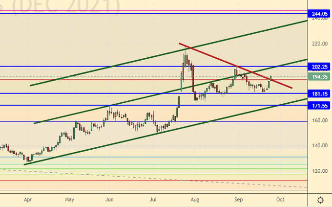 The fairy tale about cheap food does not want to become reality. Prosperity is being postponed all the time even under developed capitalism. Cereal prices are going up again, and this is at a record harvest in the world. If demand remains at a high level, and it will, as rulers around the world are afraid of the pandemic, it is scary to imagine what prices we will see in the event of a cold winter in Europe and Russia, when winter crops begin to freeze. It makes sense to keep a close eye on temperatures this winter.