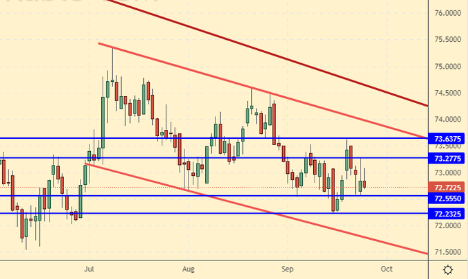 Growth scenario: the situation is uncertain. If the market rises above 73.50 again, you can buy. Anyone in position from 73.00, keep longs.
