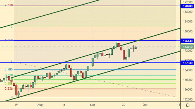 Growth scenario: expensive energy supplies support the Russian stock market. The external background also remains positive despite the forecasts for the reduction of the quantitative easing program and the strengthening of the dollar. We leave out new possible US sanctions for now, although in the long term they may affect the Russian economy. If the market goes above 178,000 you can buy.