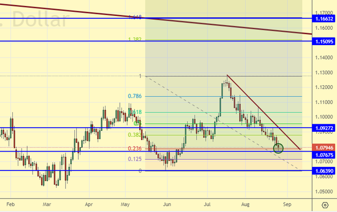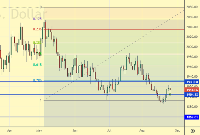 Growth scenario: we are considering the October futures, the expiration date is September 20. Buying at current levels is not convenient. Out of the market.