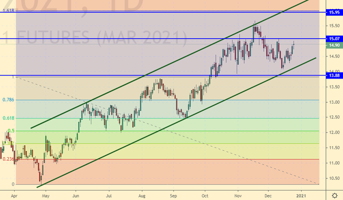 Growth scenario: March futures, expiration date February 26. We entered the long last week, although there were doubts. Now we’re waiting for how big the coconut will grow.