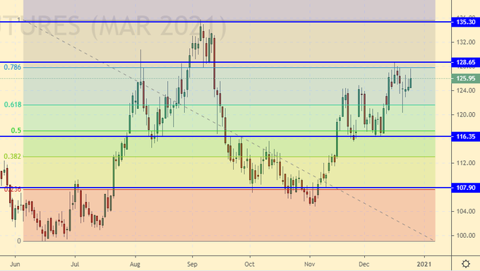 Growth scenario: March futures, expiration date March 19. Kept long with a stop at 118.00. We move the stop slightly up and stand.