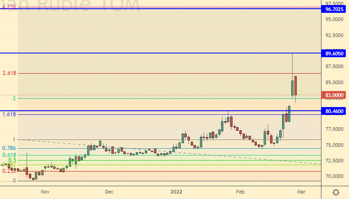 Whether the Kremlin will raise rates is not yet clear. You can refuse to pay dividends abroad. You can nationalize a number of enterprises, you can declare a refusal to pay their debts. There are still tools to influence inflamed minds. Biden says that the next step after freezing the assets of the Russian Central Bank is a nuclear war. Grandpa is wrong. Even with a moderate imagination, you can come up with a lot of things.