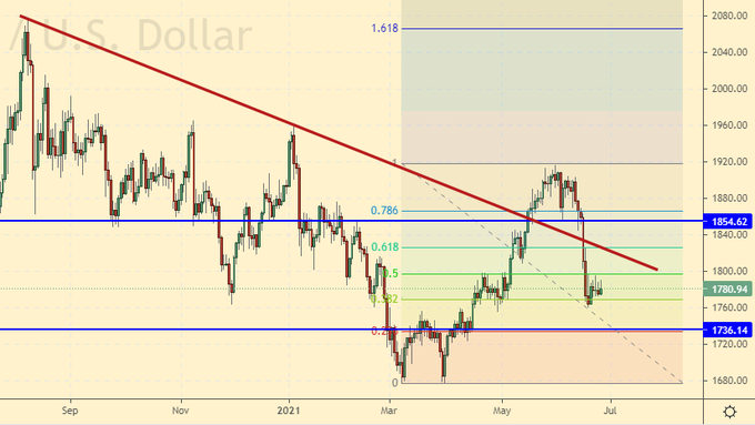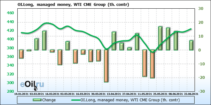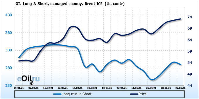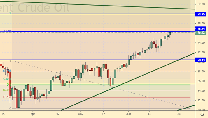 Thus, against the backdrop of the upcoming meeting of the OPEC + countries on July 1, traders will start betting on falling prices right on Monday, without waiting for the results of negotiations on a nuclear deal between the United States and Iran. In addition, the data on open interest tells us about the approaching fall of the market, where we see a fall in the number of long positions in both Brent and WTI.