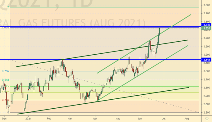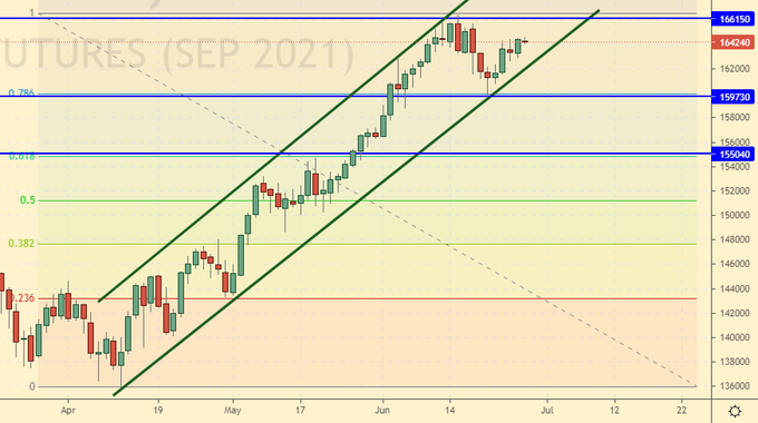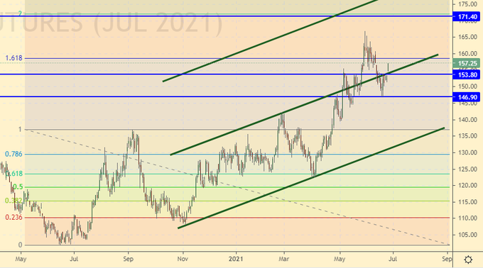 Growth scenario: July futures, the expiration date is July 20. It’s a pity, but the hike to 135.00 is postponed. You will have to buy from the current levels.