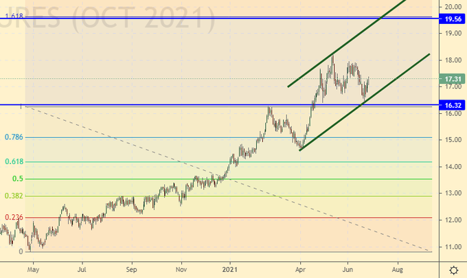 Growth scenario: October futures, the expiration date is September 30. Here you need to go long, because you don’t want to miss the move to 19.50. In case of failure, we will make a second attempt to buy from the 15.00 area.