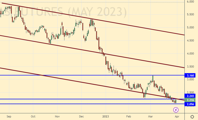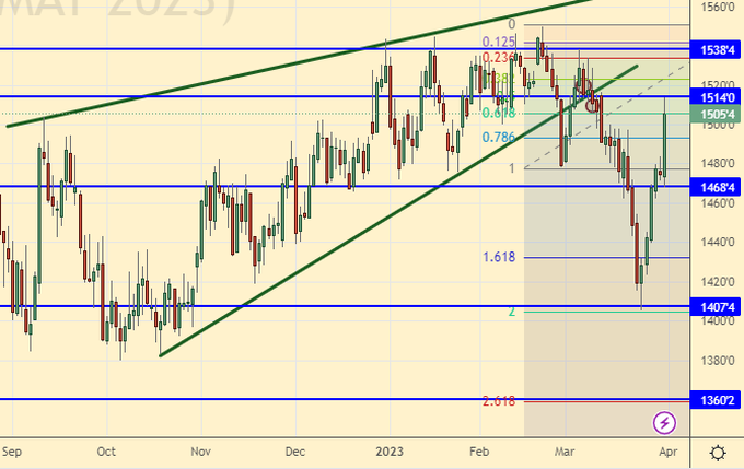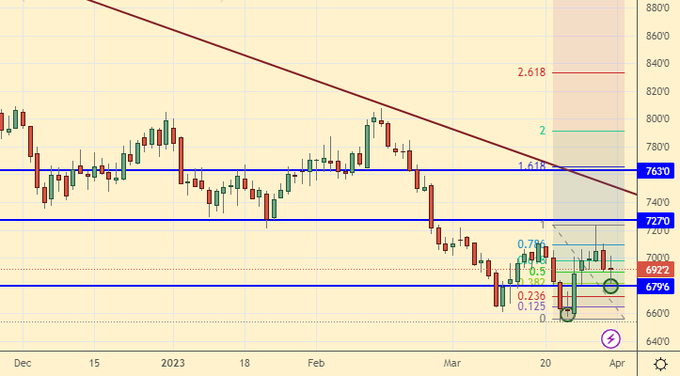 Growth scenario: consider the May futures, the expiration date is May 12. Let’s move the target to 765.0. The upward movement remains the main one for us. The bulls have all April to raise prices. But then it will be impossible to do this, the season will begin.