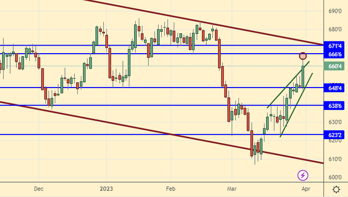 Sale: now. Stop: 674.0. Target: 550.0 cents per bushel. Who is in position from 688.0, move the stop to 674.0. Target: 550.0 cents per bushel. Count the risks.