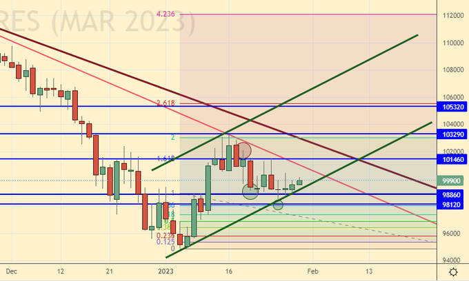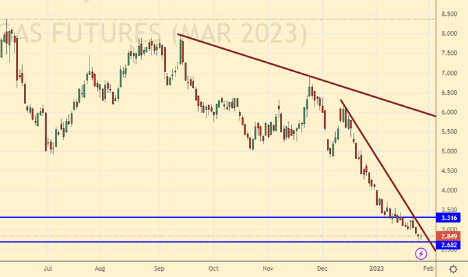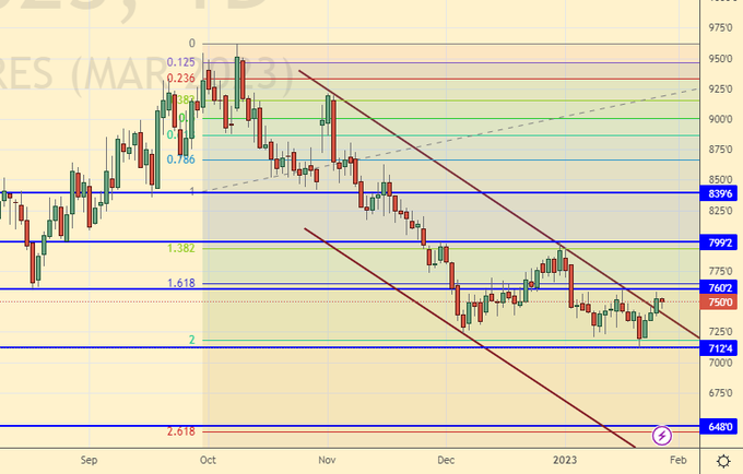 Growth scenario: we consider the March futures, the expiration date is February 24th. Prices are extremely low. Can buy. A retracement to 3.500 is already a 25% uptrend.