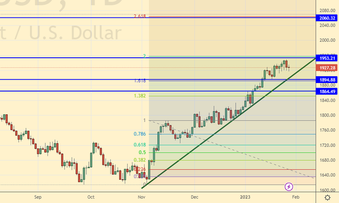 On Wednesday, February 1, the US Federal Reserve is likely to raise the rate by 0.25% to 4.75%. If inflation data in America continues to show a slowdown, then it is possible that the rate will not be raised in March. Note that a rate close to 5% creates strong fundamental positions for the dollar, especially in an environment where there are not so many ideas for investment.