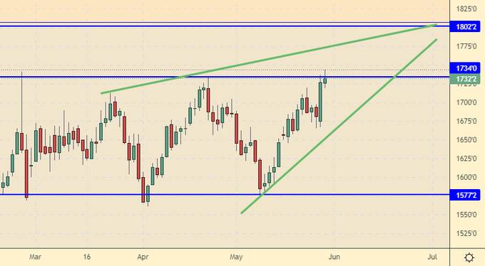 Growth scenario: we are considering the July futures, the expiration date is June 21. We will keep longs open two weeks ago. We look up with optimism.