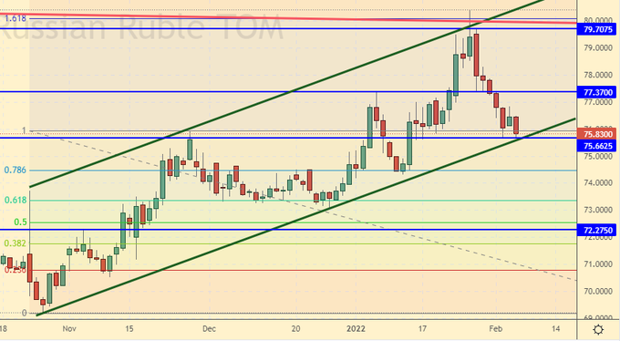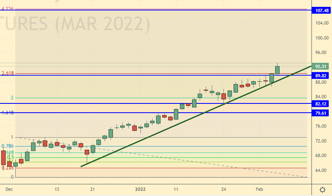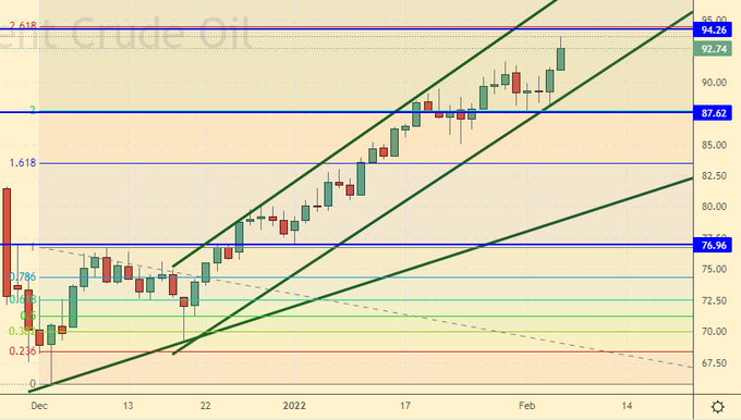 Growth scenario: February futures, the expiration date is February 28. The market was approaching the level of 94.20 last week. A rollback to the 80.00 area should begin from the current levels. We don’t buy.