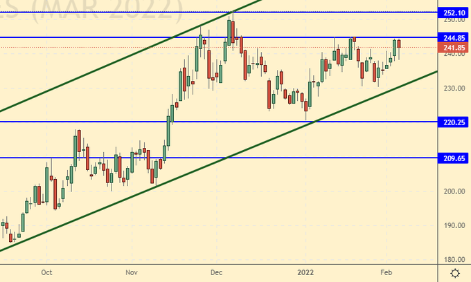 Growth scenario: March futures, the expiration date is March 21. Found resistance at 245.0. Most likely we will see a rollback down. If there is an increase above 247.0, a small long is possible.