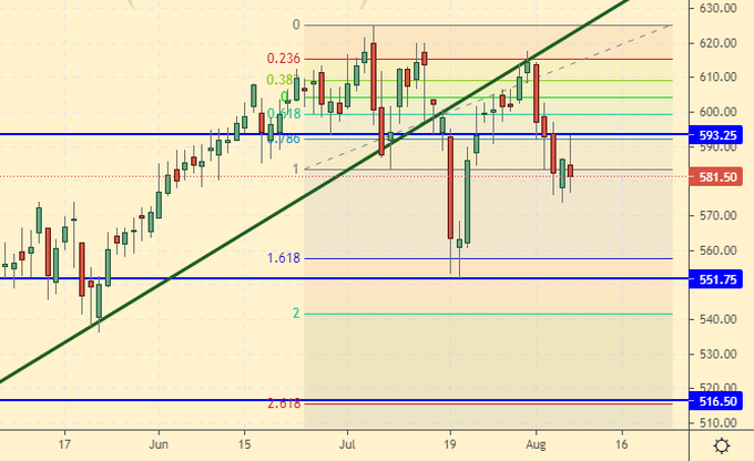 Growth scenario: September futures, expiration date September 14. From the point of view of tactics, nothing has changed if the market rises above 580.0, we will buy.