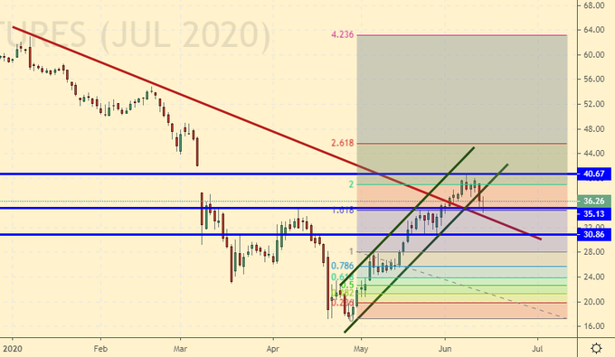 Growth scenario: July Futures, the expiration date is June 22. The current levels remain overvalued for purchases. We have to wait for correction at 28.00 — 30.00 in order to buy.