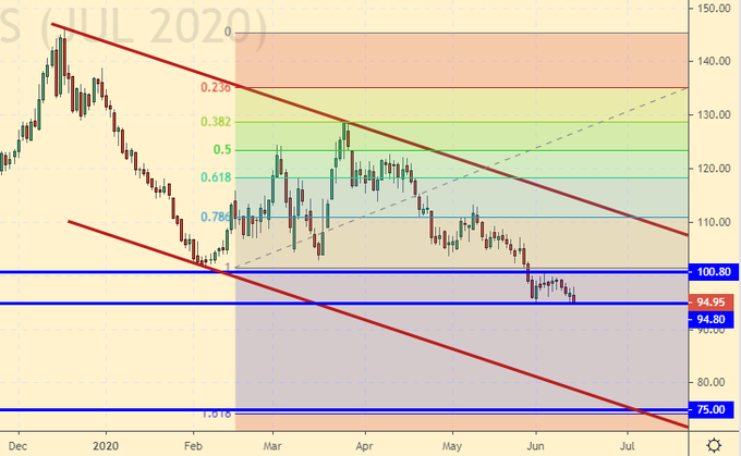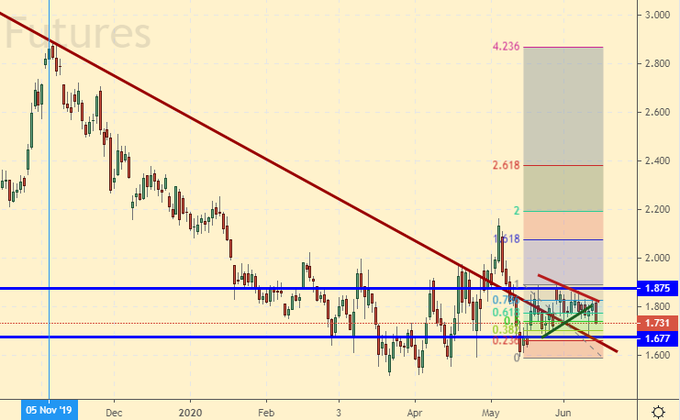 Growth scenario: July futures, the expiration date is June 26. Too bad, but we didn’t go up. The gas sector in US is now in a decline stage. As you know, 30% of natural gas in the U.S. is extracted by-product of oil during hydraulic fracturing. Thus, gas production in the USA will fall, which will affect prices. In case of growth above 1.800, we buy it again.