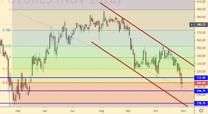 The number of sellers has grown dramatically. Amid the pandemic, 25,000 contracts were sold, which led to a sharp drop in prices. It is unlikely that market sentiment will change dramatically after the US presidential election. Almost all of Europe will go into quarantine from Monday. This is not a background against which growth is possible.
