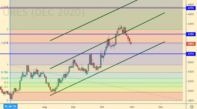 Growth scenario: November futures, expiration date November 30. The fall in quotes creates attractive opportunities to enter long. But the fundamental background due to the virus is extremely bad. Note that it is better to carry out all actions on the market after the results of the US presidential elections.