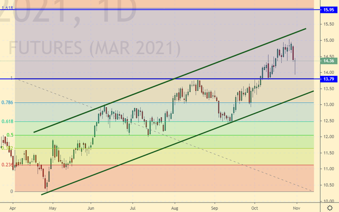 Falling scenario: if oil does not turn up, then from 3.53. can be sold. The target will be at 3.110, a deeper decline is possible in the event of a warm November in Europe and the US.
